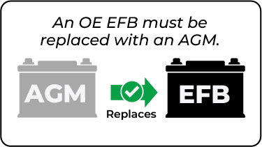 An OE EFB battery should be replaced with AGM as there is no EFB battery designed to handle the vehicle specific battery requirements.