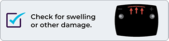 If the battery case looks bloated or cracked, that is a sign of internal damage, often caused by extreme temperatures.